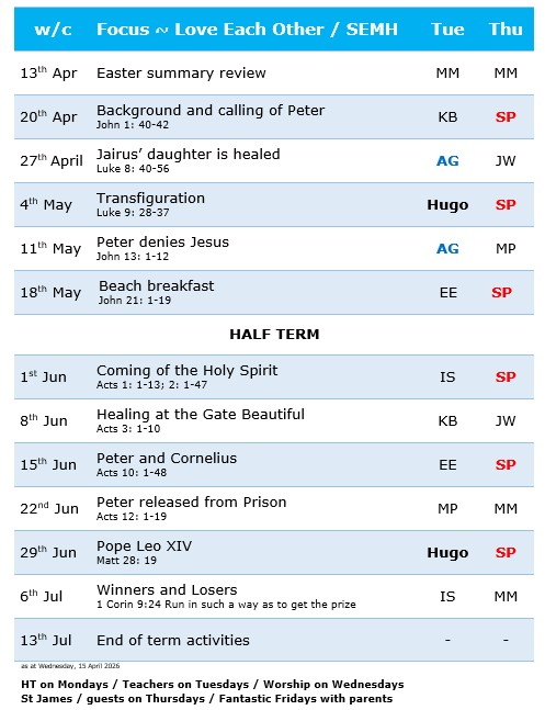 Our collective worship themes during summer 2026 are below: