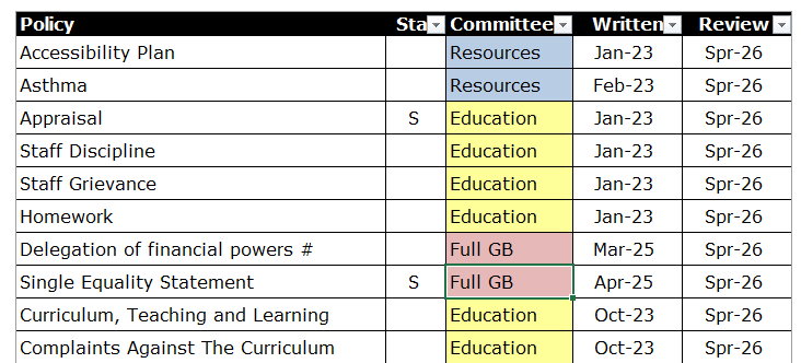 We comply with the General Data Protection Regulations (GDPR), and in our school the Data Protection Officer (DPO) is Mrs Katie Owen. Should you have any questions regarding how we process personal or sensitive data please contact her via the school office. Policies for review during the spring term of the 2025/26 academic year are indicated below: