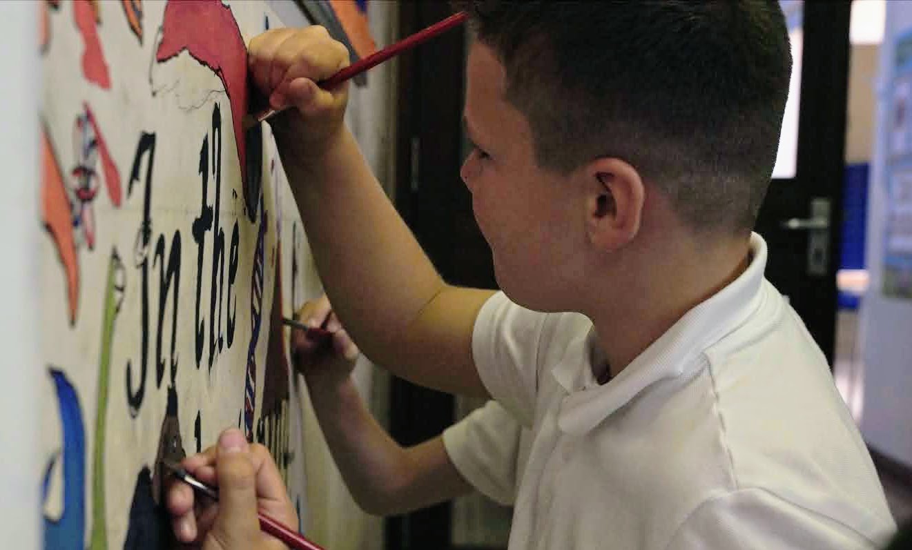 During Key Stage 2 pupils develop their creativity and imagination through more complex activities. These help to build on their skills and improve their control of materials, tools and techniques. They increase their critical awareness of the roles and purposes of art, craft and design in different times and cultures. They become more confident in using visual and tactile elements and materials and processes to communicate what they see, feel and think. They can even paint timelines on our walls!