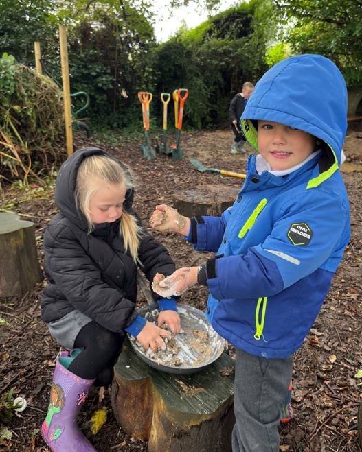 And what's not to like about making mud pies? Learning through play, outside, is an integral part of our Early Years provision: