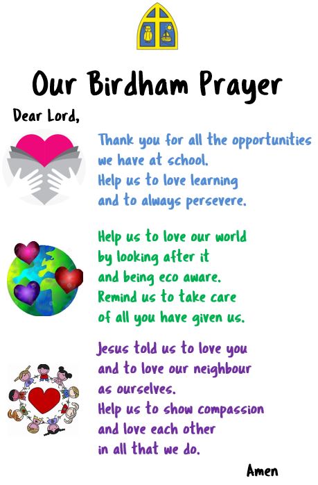 Whilst our children still recite the Lord's Prayer and the Prayer of St Richard, unsurprisingly their favourite prayer is the one that they collaboratively produced in 2023. They were sure they wanted it to be personal to Birdham, and each verse mirrors our school vision: